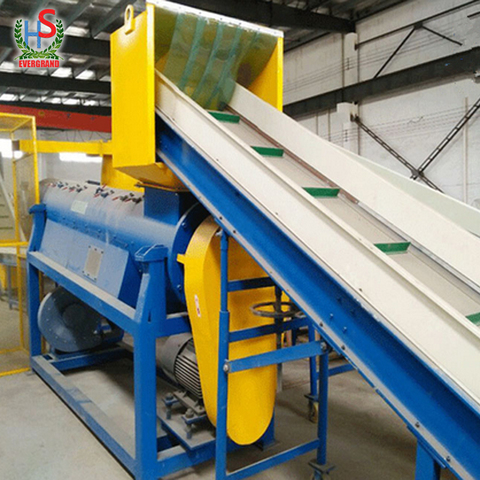 プラスチック製のペットボトルクラッシャーとワッシャー廃棄物使用済みペットボトルスクラップ洗浄破砕施設廃棄物リサイクルライン